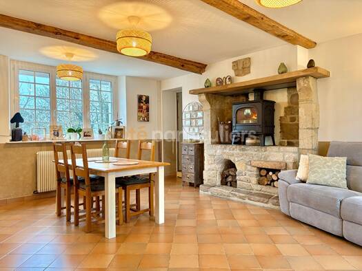 Venez découvrir cette charmante maison construite en 2012, située dans un environnement calme. Poussez la porte d'entrée pour découvrir un agréable séjour/salon avec poêle à bois, ouvert sur une cuis...