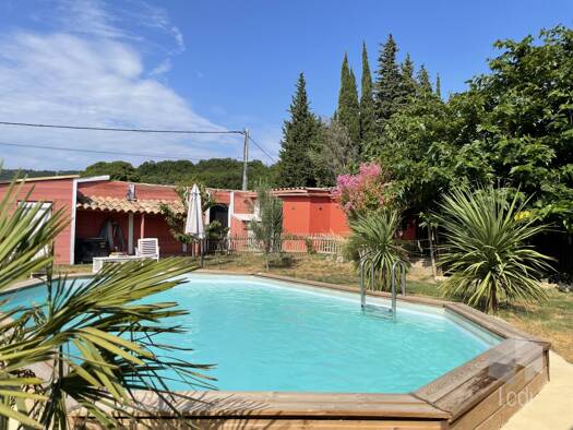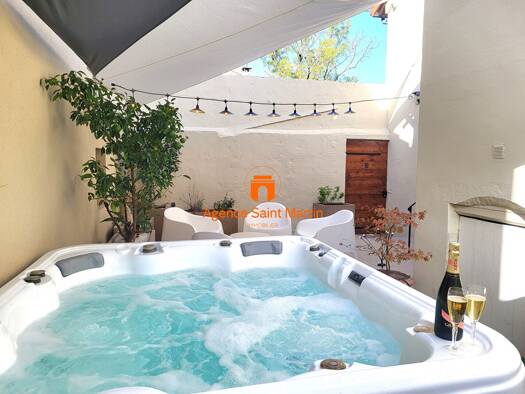 MEYSSE, en exclusivité, Charmante maison avec studio indépendant, piscine et spa, située dans un environnement paisible. Maison principale d'environ 60 m² : Cuisine équipée ouverte sur une agréable p...
