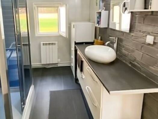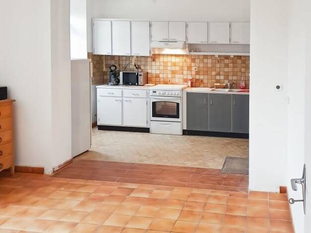 Maison de bourg de plein pied comprenant : un salon ouvert sur cuisine, 2 chambres une grande salle de bain avec douche et baignoire, une arrière cuisine. ,Un terrain de 290 m² avec abris de jardin. ...