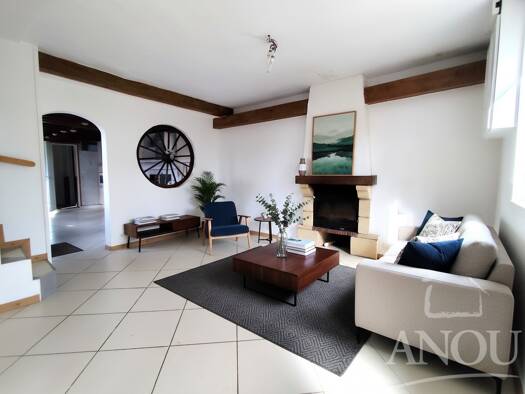 ABP Immobilier vous présente à la vente cette charmante maison atypique, pleine de caractère et de charme, située dans un cadre paisible et agréable. À proximité de tous les commerces, cette maison b...