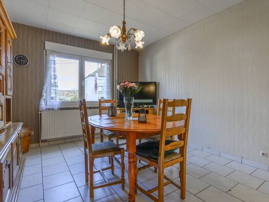 Située à ERSTEIN, proche de toutes commodités, découvrez cette maison construite en 1960, mitoyenne d'un côté. D'une surface de 83 m2 habitable, 87 m2 au sol, sur un terrain de 6,27 ares constructibl...