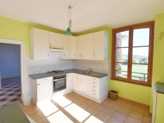 A visiter sans tarder cette agréable maison rénovée, située à SAULIEU sur son terrain de 1768m². Le rez de chaussée, très lumineux, avec portes fenêtres donnant accès aux deux terrasses, une à l'avan...