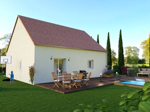 La Gamme Idéale vous propose un modèle de maison avec garage intégré avec le modèle Sioux 7 GI. Au rez-de-chaussée une entrée donnant accès à un WC indépendant, une grande pièce de vie avec cuisine o...