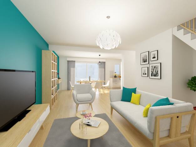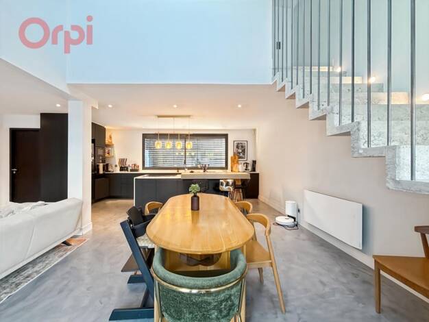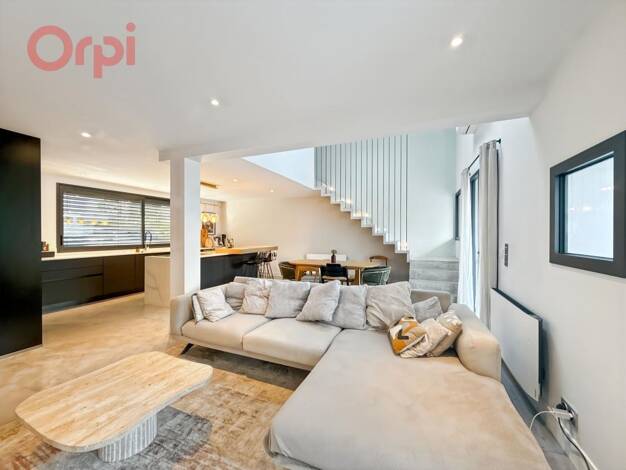Au rez-de-chaussée : séjour : lumineux, grandes ouvertures, orientation façade arrière, pièce de vie moderne et carrée. Cuisine ouverte sur le séjour. WC : indépendant Étage : 3 chambres. Salle de ba...