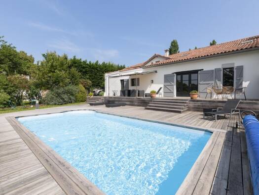 Aux portes d'HAGETMAU Nichée dans un environnement boisé et calme, cette superbe villa contemporaine de plain-pied de 114 m2 habitables, construite en 2008, offre des prestations de qualité et de trè...