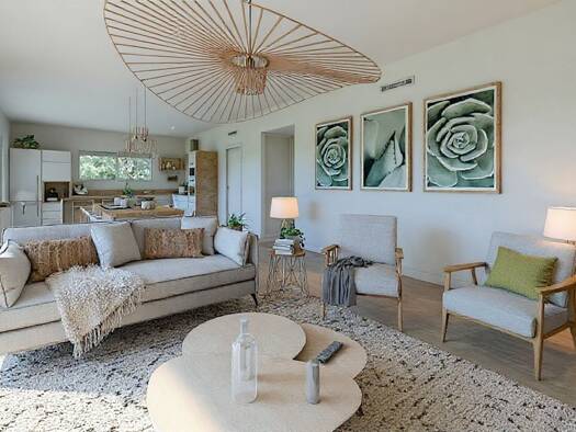 A vendre terrain de 602m² viabilisé. Dans cette charmante maison de plain-pied de 123 m² habitables, la vie s'organise autour d'un très bel espace de vie de plus de 54 m², très lumineux grâce à de no...