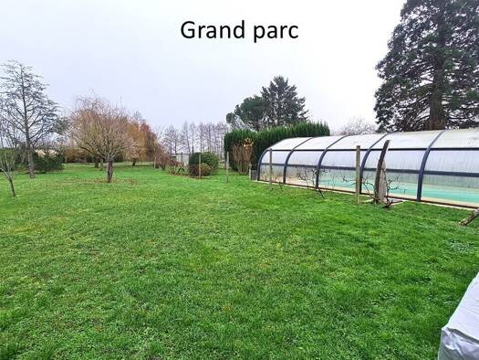 Maison d'habitation sur 4410m² de terrain clos de murs et arboré comprenant : Une entrée cathédrale, une bibliothèque avec poêle à bois, une véranda, un salon avec cheminée insert, une salle à manger...