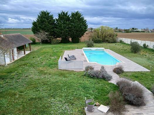 iad France - Elise DOGER vous propose: Charmante maison de plain-pied avec jardin, garage et piscine hors-sol à Vineuil, à seulement 10 min de Châteauroux. Nichée dans un environnement paisible, cett...