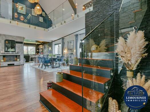 Maison mitoyenne d'exception à Limoges, 134 m², entièrement rénovée. Elle est composée de 4 chambres spacieuses, un vaste séjour lumineux, une magnifique cuisine ouverte, terrasse ensoleillée et jard...