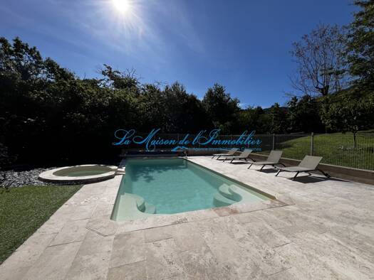 À découvrir, au calme avec une belle vue, charmante villa de plain-pied, offrant de belles prestations, composée de 6 pièces avec piscine, pool house et abri voiture. Elle se compose d’une grande piè...
