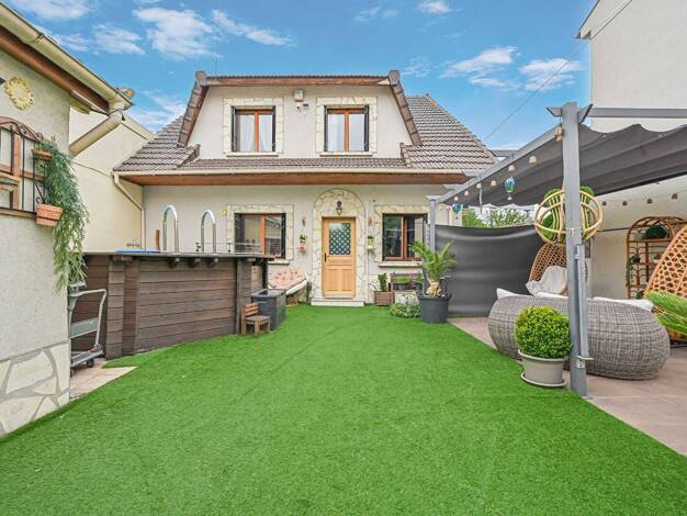 Romainville – limite Montreuil Dans le quartier des Ormes, sur une parcelle de 222 m², nous vous proposons en exclusivité une maison familiale d'une surface totale de 125 m² (95,43 m² habitables), ag...
