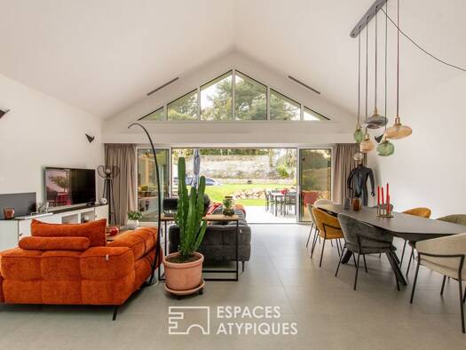 Karacterre® Angers, vous présente cette propriété unique aux portes d'Angers. Bien extrêmement rare et hors du commun.Ancien hangar réhabilité en un projet d'habitation hors normes, ce lieu vous offr...