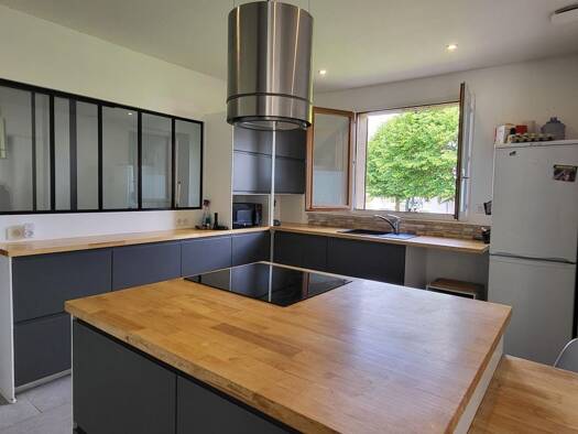 MENETROL - 5 mn de RIOM - Maison de plain-pied de 130 m² comprenant une pièce de vie ouverte sur terrasse avec belle cuisine équipée, 1 suite parentale, 3 chambres, salle de bains, cellier ; le tout ...