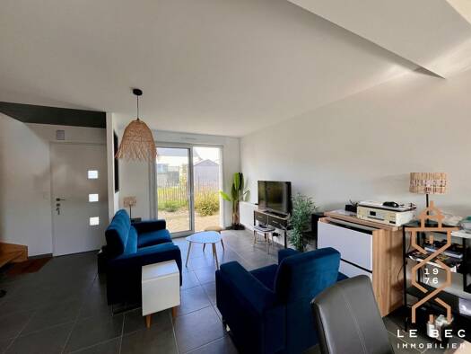 Cette maison de plain pied (2019) est fonctionnelle et située dans un jardin clos de 600m2 . Elle se compose d'une pièce de vie de 36 m2 lumineuse, cuisine semi ouverte de 13 m2 ,cellier , un vaste e...