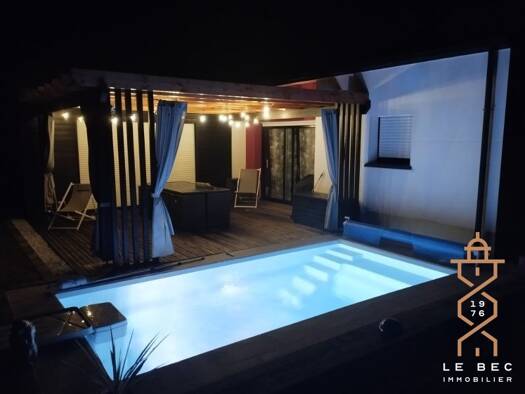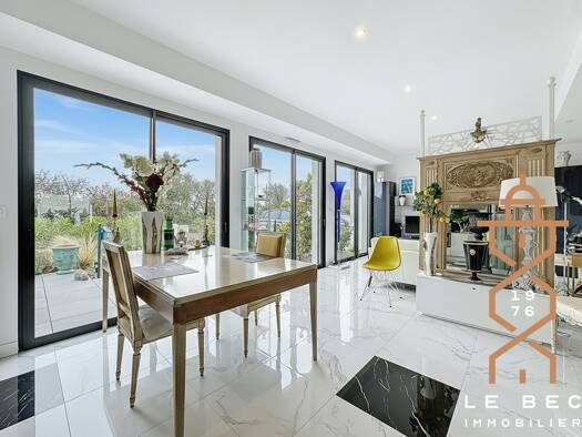 Rare, maison entièrement de plain pied dans un cadre privilégié au calme. Très beau séjour salon avec cuisine équipée ouverte, suite parentale avec dressing et salle d'eau privative + 2 autres chambr...