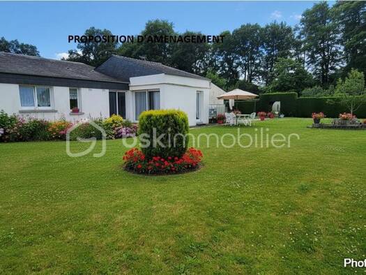 iad France - Marie Colin vous propose: Maison de plain-pied avec sous-sol complet, jardin arboré et vue sur la cité médiévale de Josselin La maison se compose d'un couloir desservant un séjour lumine...