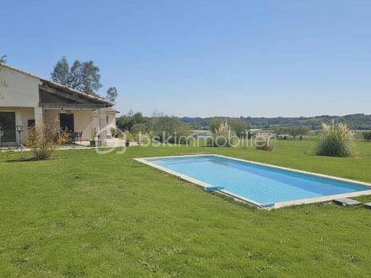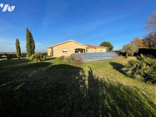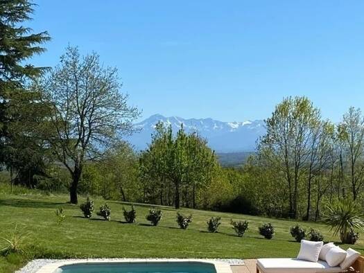 iad France - Sylvie Checchin vous propose: Belle maison traditionnelle de plain-pied avec vue exceptionnelle sur les pyrénées à Laguian-Mazous : 3 chambres, vaste jardin et piscine Vous recherchez un...