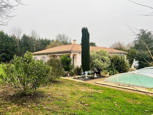 iad France - Isabelle Bernard vous propose: Venez et posez vos valises dans cette maison traditionnelle de 160 m² environ, de plain-pied, avec jardin arboré, piscine et autres belles prestations à Mi...