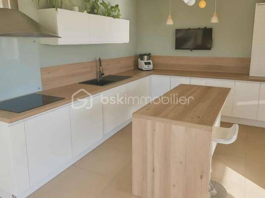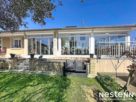 De plain pied, venez visiter cette maison de type 4 offrant de belles prestations. La pièce de vie de plus de 45m² est très lumineuse, ainsi que les 3 chambres. Un studio indépendnat avec véranda com...