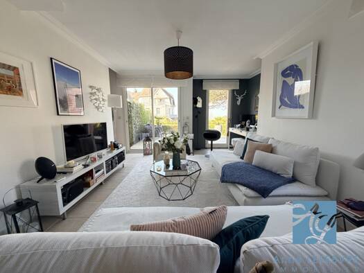 Anne LEFEBVRE IMMOBILIER vous propose dans une résidence de standing sur les hauteurs de Trouville-sur-Mer, une superbe maison LUMINEUSE de 3 pièces à l'esprit chic bord de mer, bénéficiant d'une piè...