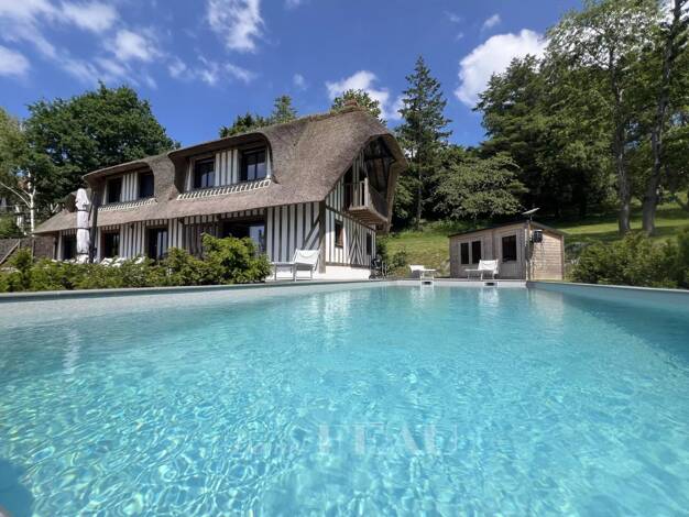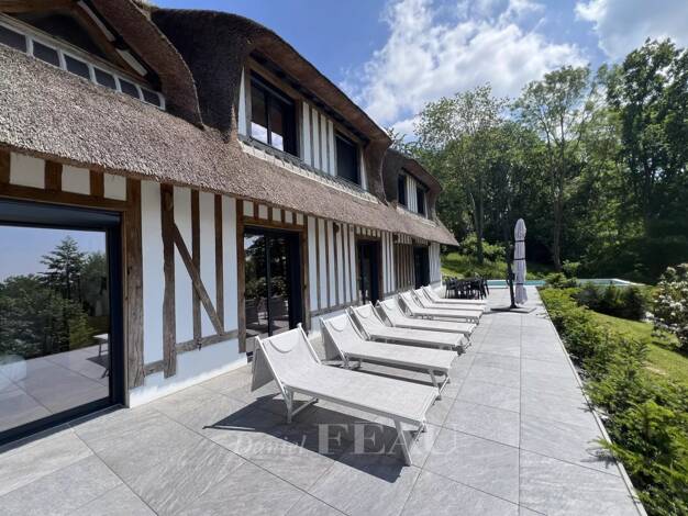 Dans un domaine sécurisé de standing et recherché avec gardien et tennis, à seulement 2 km des commerces, Daniel Féau Deauville vous présente une magnifique CHAUMIÈRE "Lebas" entièrement rénovée de 1...