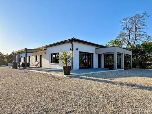 Maison de plain pied avec 4 chambres , pièce de vie lumineuse, ouverte sur la cuisine et grand garage. Le jardin agrémenté de sa piscine sauront vous séduire pour profiter du calme environnant à deux...