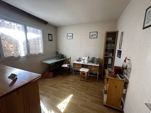 Maison mitoyenne au centre-ville. Rez-de-chaussée : cuisine entièrement équipée, salon avec double porte-fenêtre donnant accès à une terrasse. 1er étage : une chambre avec salle d'eau et WC. 2e étage...