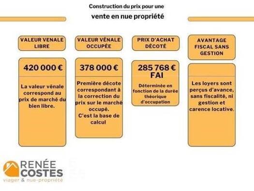 Un bien valorisé 275 000 EUR, acquis sur une base de 135 000 EUR, soit 140 000 EUR de gain patrimonial immédiat. Référence 422613009 Age : Homme de 68 ans Bouquet : 73375 EUR Rente : 551 EUR/mois Pri...
