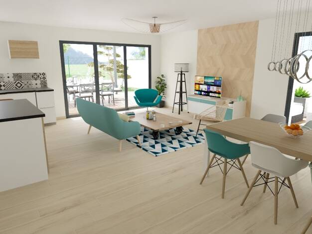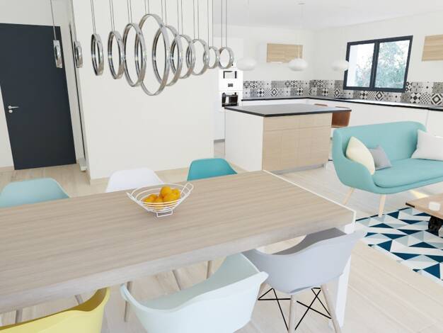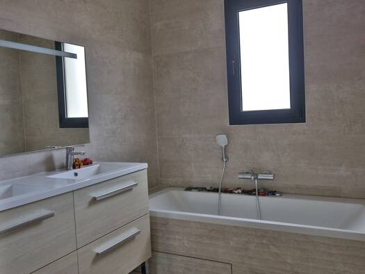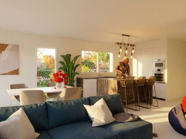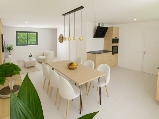 Secteur résidentiel, proche de l'accès autoroute, Villa neuve à étage, non mitoyenne, d'environ 90m² habitables, Composée au rez-de-chaussée d'une vaste pièce de vie d'environ 40m² avec hall d'entrée...