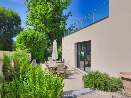 Belle maison en hauteur très bien entretenue et aménagée avec des prestations de qualité dans un petit lotissement au calme sans vis-à-vis sur terrain clos de 842 m². Portail automatique et allée d'a...