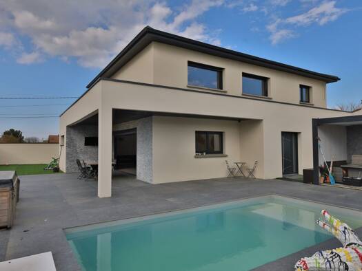 À Grenay, à seulement 10 minutes de l'aéroport de Lyon-Saint-Exupéry et 7 minutes de la gare de La Verpillière, découvrez cette maison d'architecte construite en 2021, alliant des volumes impressionn...