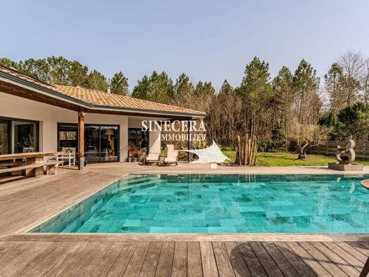EXCLUSIVITÉ – Biganos, route d'Audenge, quartier Tagon / Vigneau À deux pas du centre-ville, au cœur d'un écrin de verdure de 4 000 m² au calme absolu, se niche cette villa d'architecte de plain-pied...