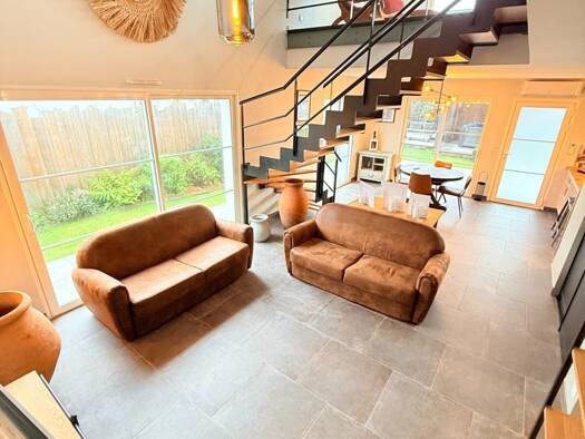 Coup de coeur pour cette villa contemporaine située dans un quartier calme et sans vis-à-vis. Le bien est composé au rez-de-chaussée d'un vaste séjour avec cuisine ouverte, une suite parentale avec s...
