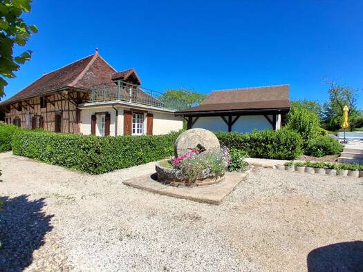 Ferme bressane à colombages du 18ème siècle offrant sur 220 m² habitable : hall d'entrée, grand séjour avec cheminée à foyer ouvert, cuisine équipée avec piano de cuisson et cuisinière « GODIN » donn...