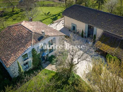 Entre Bordeaux et Toulouse, à 5 min d'une bastide médiévale, un ensemble en pierres du 18e, sur 5 ha avec vue sur les Pyrénées . Le domaine est établi en contre-bas d'une petite route très peu fréque...