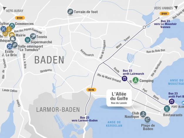 Exclusivité 3% Julie & Romain BRIFFAUT Baden À seulement 200 mètres de l'eau, idéalement situé entre le port du Parun, la plage du Dreven, les sentiers côtiers et le Golf de Baden, ce terrain à bâtir...
