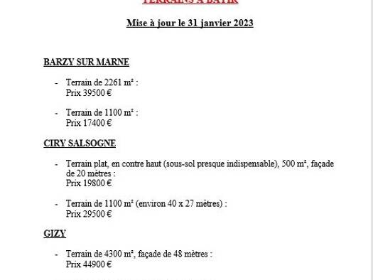 A VENDRE TERRAIN A BATIR CIRY SALSOGNE 02220 Un terrain de 8a77ca 31 800 euros (honoraires de négociation à la charge du vendeur)